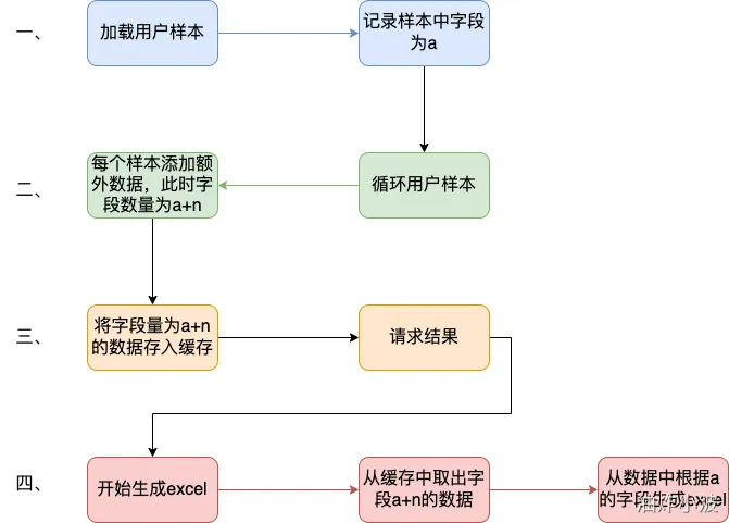 - 开始生成excel,将200mb数据从缓存中取出,并根据之前记录的a个字段,取出初始的样本字段填充至excel。