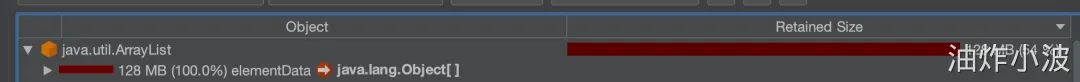 以下是刚上传的excel中dump出的堆内存对象,其占用的内存达到了128mb,而上传的excel实际只有17.11mb。