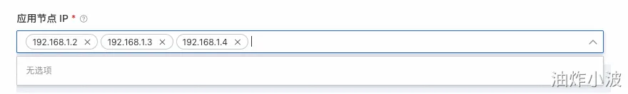 3. 单击应用节点 IP 输入框,在 IP 地址列表中选择待灰度推送的 IP 地址。您也可以选择手动输入 IP 地址,手动输入支持 IP 地址补全。