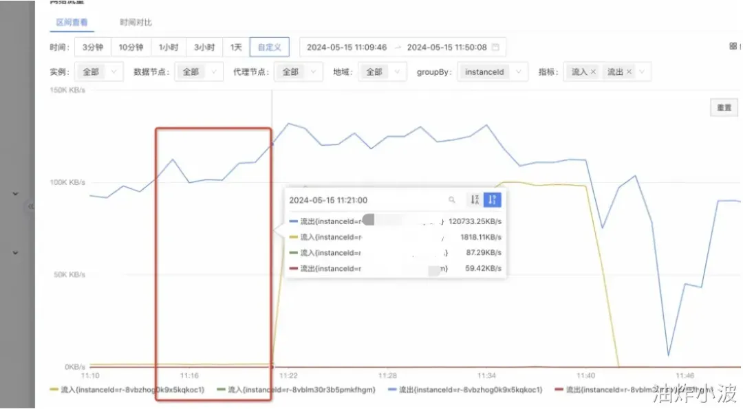 3.CPU使用率、内存使用率、带宽使用率变化趋势(流入、流出都要看,最好看一个缓存周期);