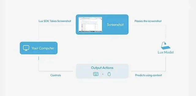 Lux 要是一个专门用于计算机操作的基础模型。和那些只会生成文字的 AI 不同,Lux 能看懂屏幕内容并理解自然语言描述的任务目标,然后实时操控计算机完成工作。
