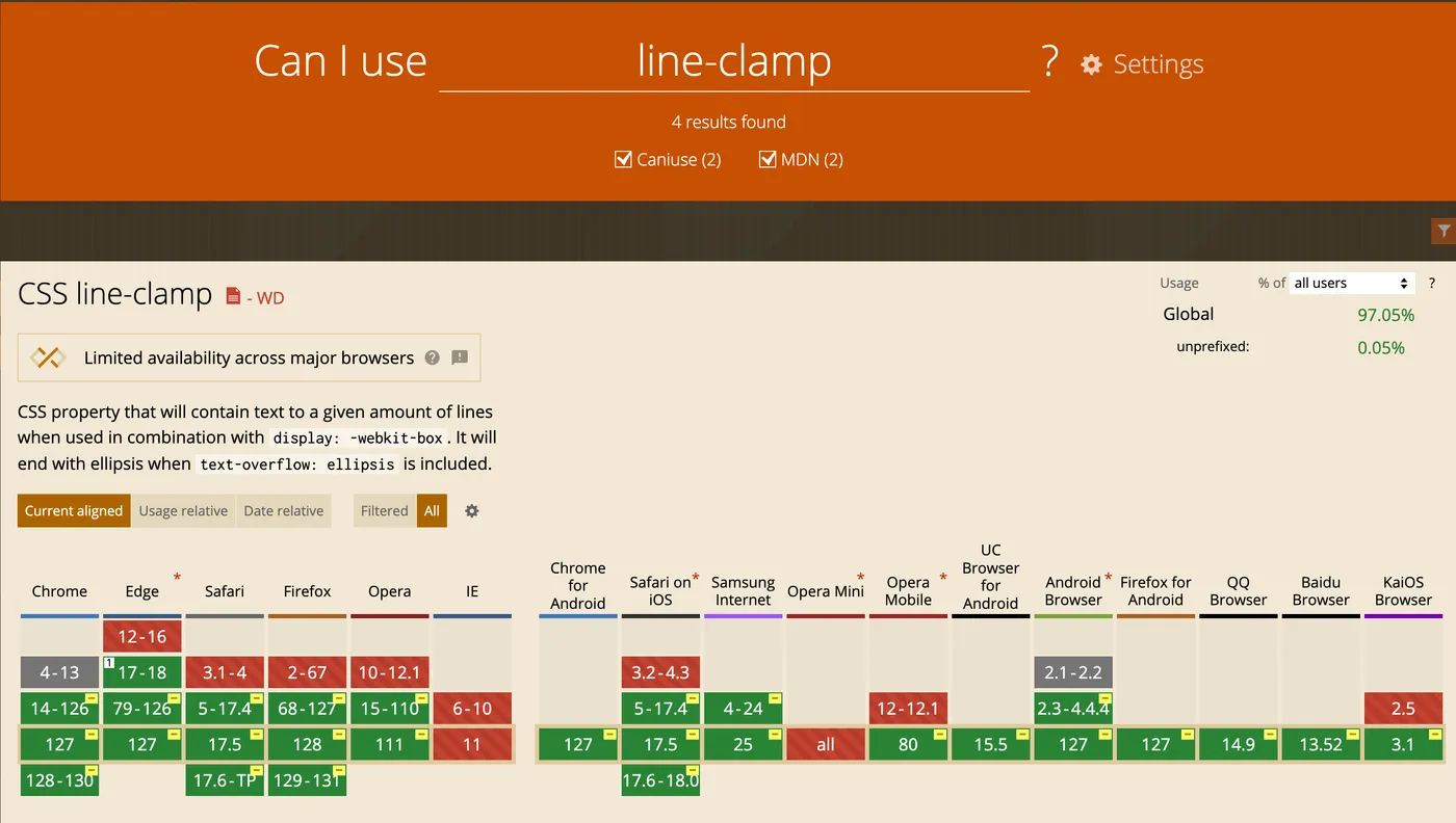 "line-clamp" | Can I use... Support tables for HTML5, CSS3, etc