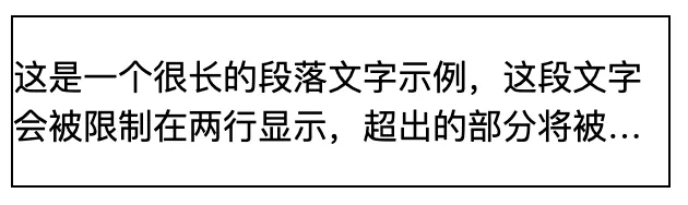 <div class="text-container"> <p class="element">这是一个很长的段落文字示例,这段文字会被限制在两行显示,超出的部分将被隐藏并显示省略号。</p> </div>