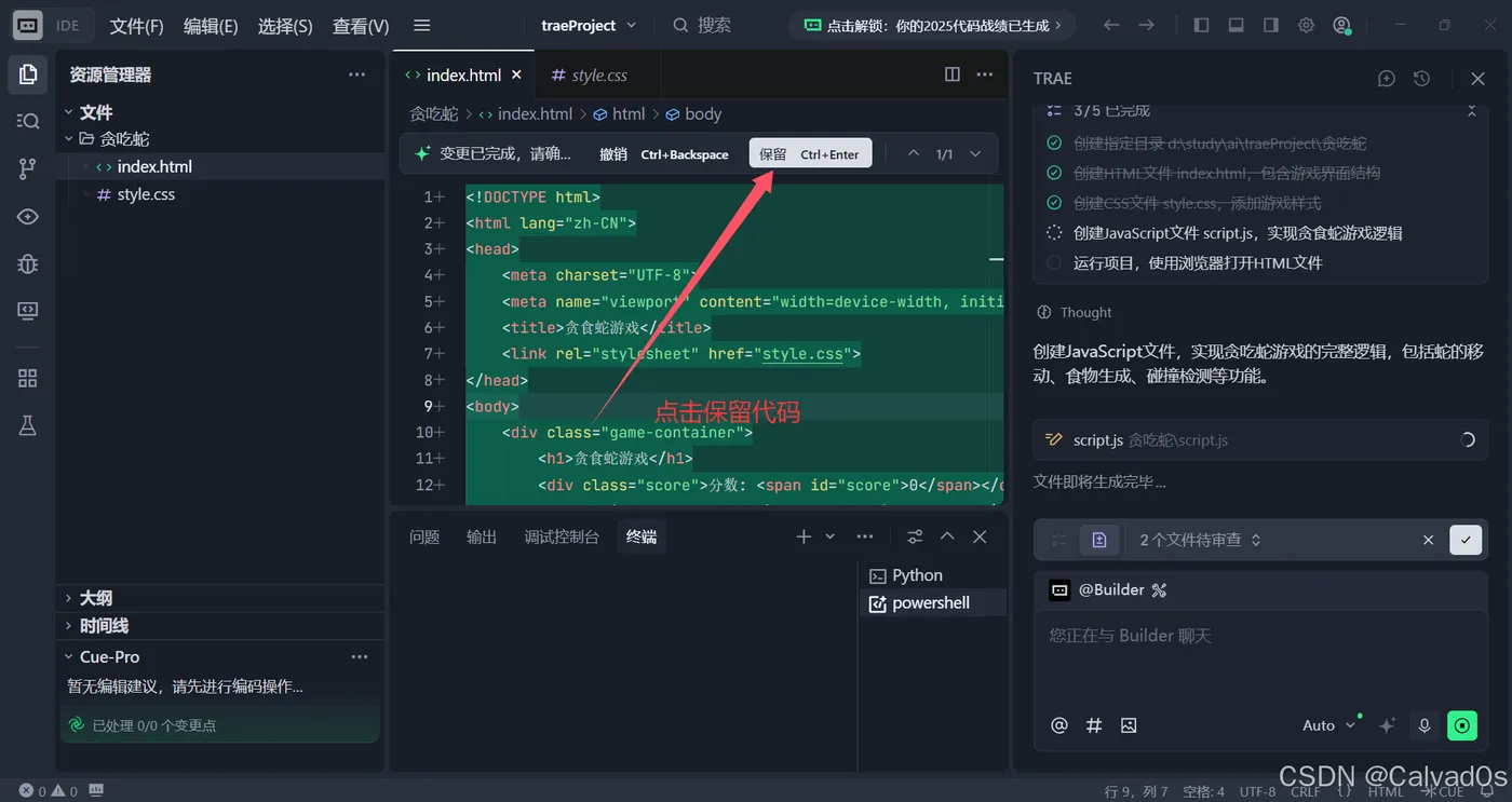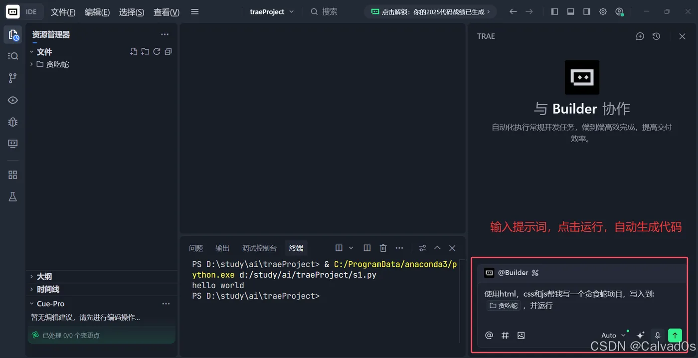 二、Trae开发贪吃蛇小游戏