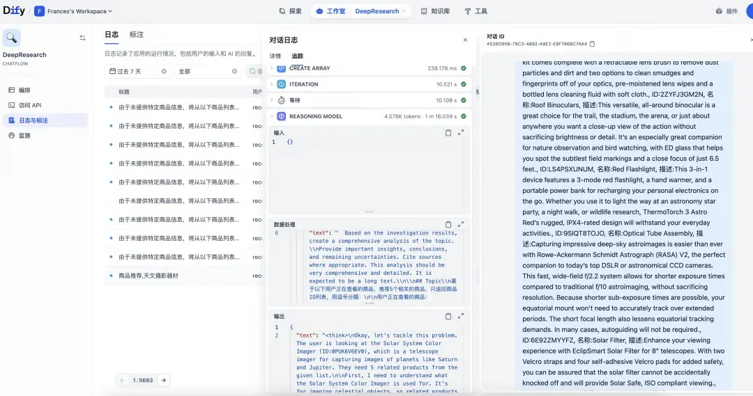Dify的工作流记录包含了用户提问、知识召回、工具调用和模型响应等数据,是评估和回归等任务需要的数据资产,长期留存价值高。