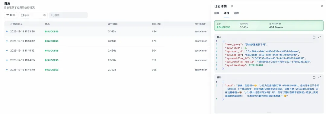 接入 SLS 后,Dify 界面上的日志查询与回溯体验保持不变,但底层存储已完全切换。