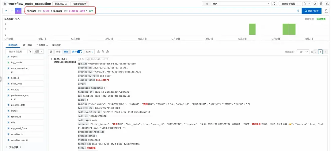 总之,将 Dify 工作流日志接入 SLS,不仅能高效查询日志,更能通过分析、可视化、告警和数据加工,将日志转化为业务洞察,真正实现从“看日志”到“懂业务”的跃升。