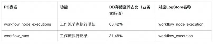 - 负载压力大:Workflow 节点的每次执行都会产生明细日志(节点执行明细数据,记录节点的输入输出和运行状态等数据),高并发下