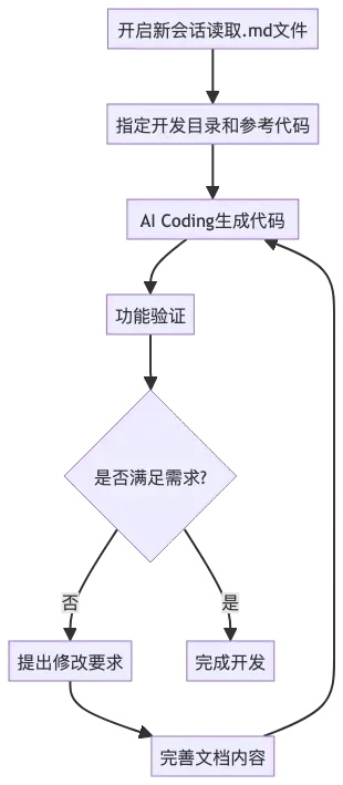- 会话管理:建议开启新的会话进行代码开发,新会话直接读取第一阶段产出的.md文件以获取上下文。这样既能保持会话的清晰性,又能有效传承关键信息。