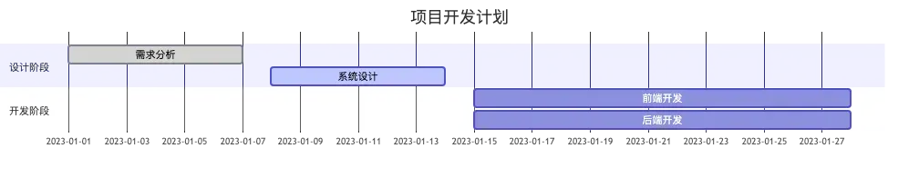 - 甘特图:用于项目进度管理