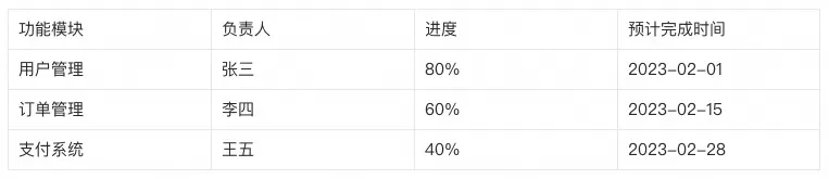 - 表格:用于展示结构化数据
