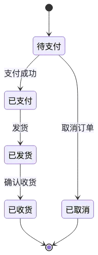 - 状态图:用于展示对象的状态变化