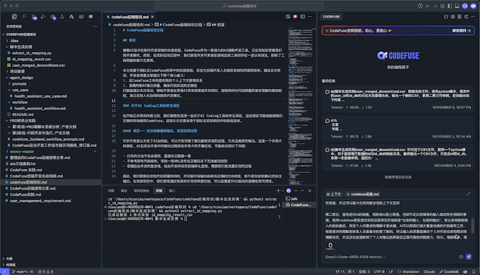 - 上下文管理:当上下文不足时,开启新的会话,新会话直接阅读.md文件以补全上下文。通过文档化管理确保上下文信息的完整性和一致性。