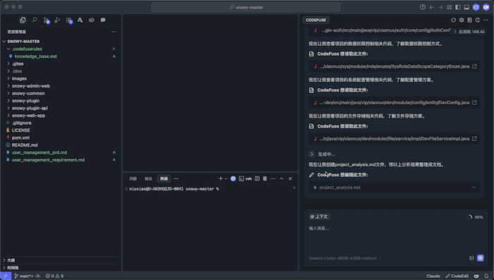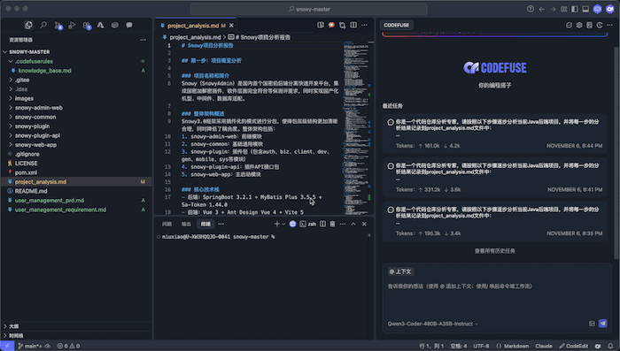 - 支持新功能开发、BUG修复、接口文档编写、系分文档编写等常见场景;