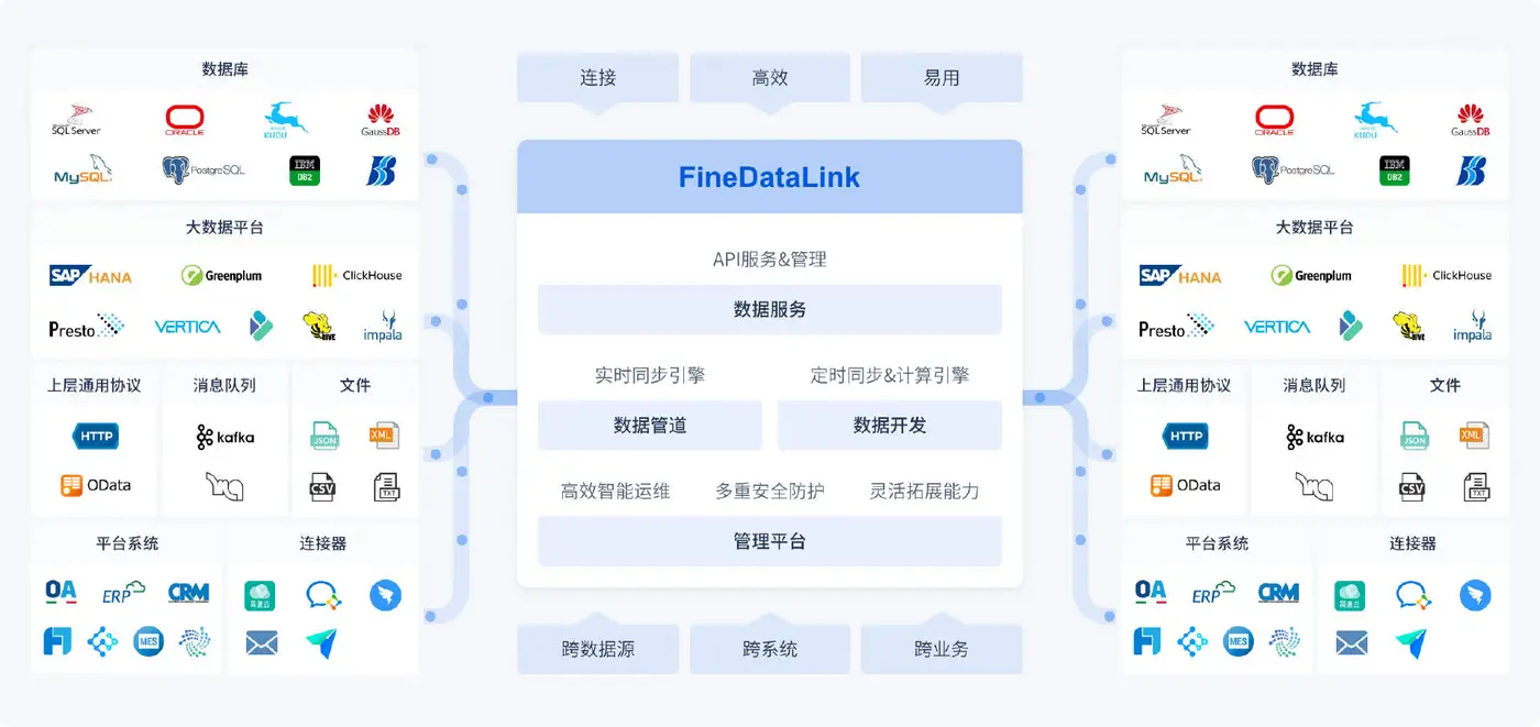第一步,它得把散落在各个角落的数据连接起来。公司可能有ERP系统管财务、CRM系统管销售、仓库还有自己的系统。平台需要有能力安全、稳定地从这些不同的系统里,把关于客户、产品的原始数据定期取出来。这个“取数据”的连接工作本身,就需要专业的工具来处理不同系统的接口和格式。比如,像 FineDataLink 这样的数据集成工具,就能很好地配置这些自动化的数据抽取任务,把分散的源头先汇集到一处,为后续的整理打下基础。