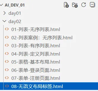 <!DOCTYPE html> <html lang="en"> <head> <meta charset="UTF-8"> <meta name="viewport" content="width=device-width, initial-scale=1.0"> <title>Document</title> </head> <body> <!-- 无语义的布局标签 作用:布局网页(划分网页区域,摆放内容), 后面与css一起使用实现内容分隔布局 div:独占一行 span:不换行 有语义的布局标签 header网页头部 nav网页导航 footer网页底部 aside网页侧边栏 section网页区块 article网页文章 作用:与div功能类似,用于特定位置使用 --> <div>div标签,独占一行</div> <span>span 标签,不换行</span><span>span 标签,不换行</span> </body> </html>