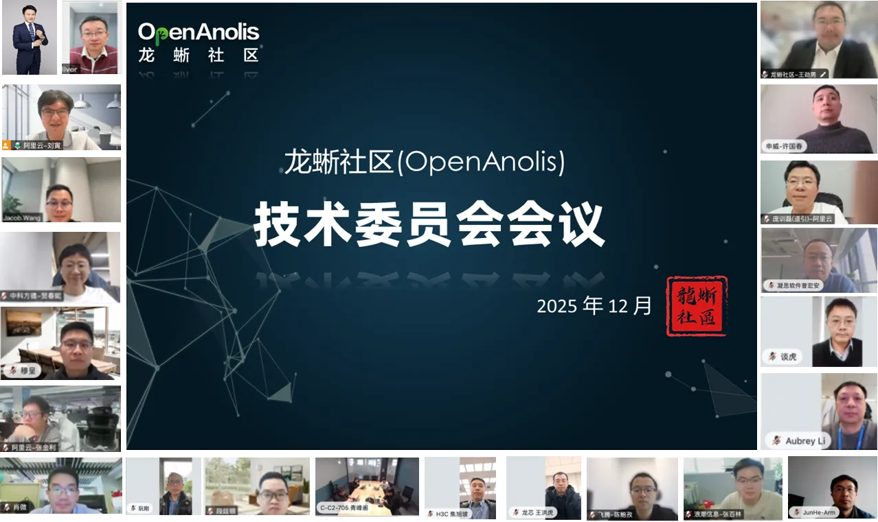 近日,龙蜥社区分别召开了第 26 次技术委员会会议和第 38 次运营委员会会议。两个会上回顾和总结了社区年度技术研发和运营进展,围绕社区重点运营项目、3 大运营目标进展、2026 年社区活动规划等进行了同步和探讨。本次会议,来自 25 家理事单位的 51 位委员及委员代表出席,技术委员会会议由龙蜥社区技术委员许国春主持,运营委员会会议由龙蜥社区运营委员刘捷主持。