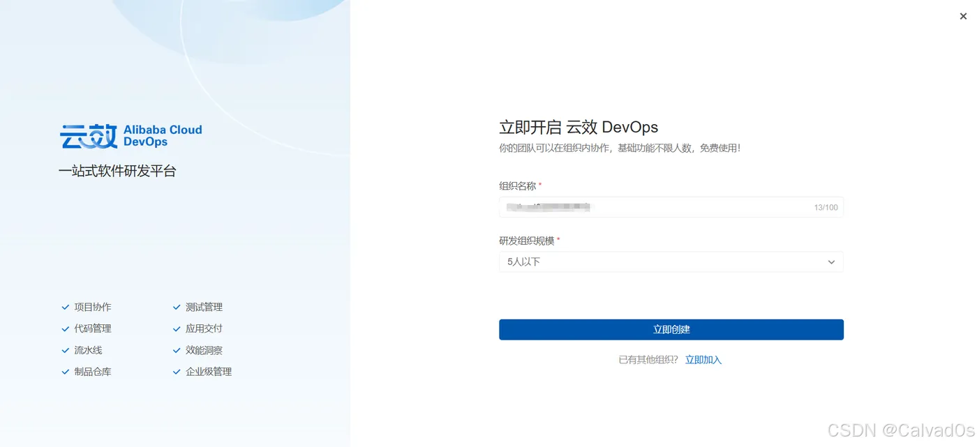 一、创建云效组织