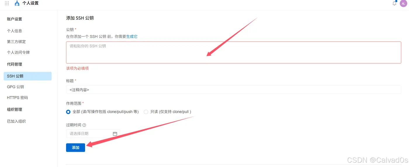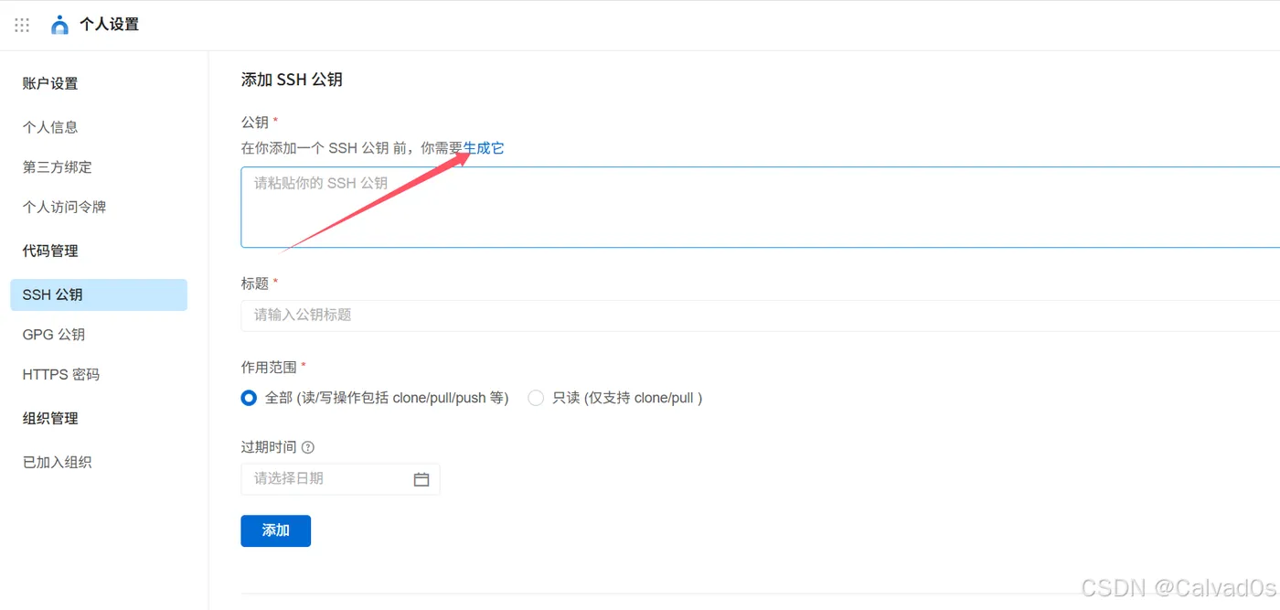 一直按回车即可,最后会给你生成一个文件id_rsa.pub,打开后有一串密钥,粘贴这串密钥到云效中: