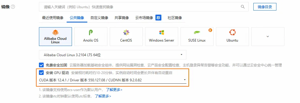在GPU实例上部署DeepSeek-V3/R1模型,需要提前在该实例上安装GPU驱动且驱动版本应为550及以上版本,建议您通过ECS控制台购买GPU实例时,同步选中安装GPU驱动。实例创建完成后,会自动安装Tesla驱动、CUDA、cuDNN库等,相比手动安装方式更快捷。