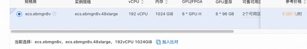 ecs.ebmgn8v.48xlarge(内存1024 GiB、GPU显存8*96 GB以及192 vCPU)。更多信息,请参见GPU计算型(gn/ebm/scc系列):https://help.aliyun.com/zh/egs/gpu-accelerated-compute-optimized-instance-families