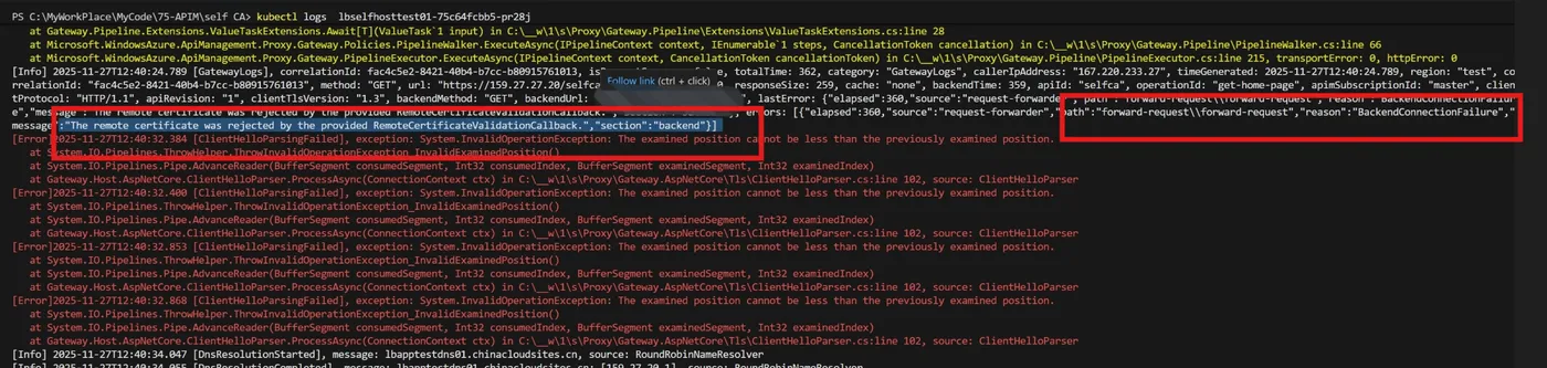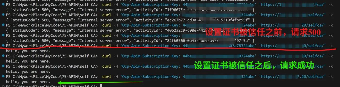 1:【Azure APIM】如何解决后端API服务配置自签名证书时APIM请求报错500:Error occured while calling backend service