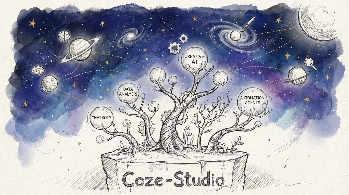 正是在这样的背景下,字节跳动推出了 Coze-Studio。它并非一个从零开始的项目,而是脱胎于字节跳动内部长期服务大规模企业与开发者的 Coze 平台。这意味着 Coze-Studio 的设计初衷,就是为了解决上述在真实商业场景中遇到的痛点。它选择将经过实战检验的、成熟的内部产品开源,旨在为整个行业提供一个经过验证的、生产级别的 AI Agent 开发解决方案,从而推动整个生态的健康发展。