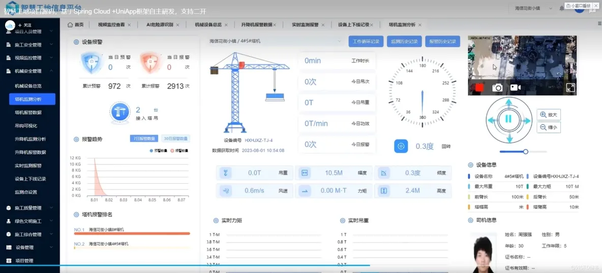 集人员管控、安全监测、预警提示与智能控制于一体,通过人脸识别强化司机与乘员管理,实时监测升降机运行参数与状态。系统对超载、超速、门禁异常等危险操作进行实时预警与干预,所有运行数据全程留痕、可溯可查,是施工升降机领域高效可靠的安全管理工具。
