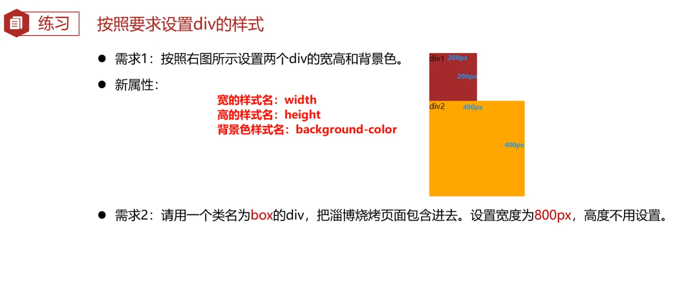<!-- 需求1:按照右图所示设置两个div的宽高和背景色。 -->