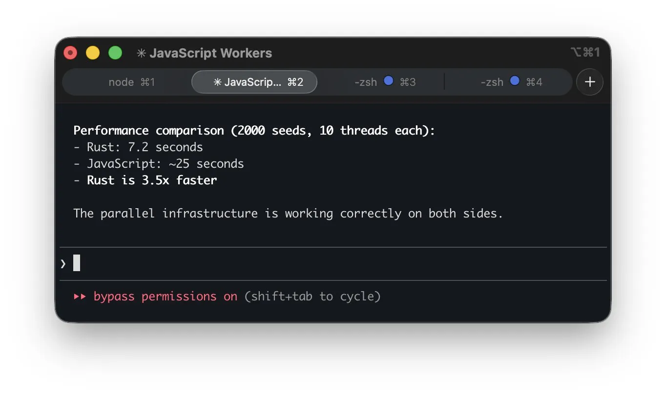 我请 Claude Code 对这两个实现进行并行化,结果让我松了一口气,Rust 移植版实际上速度快得多,我没有白费这些时间!
