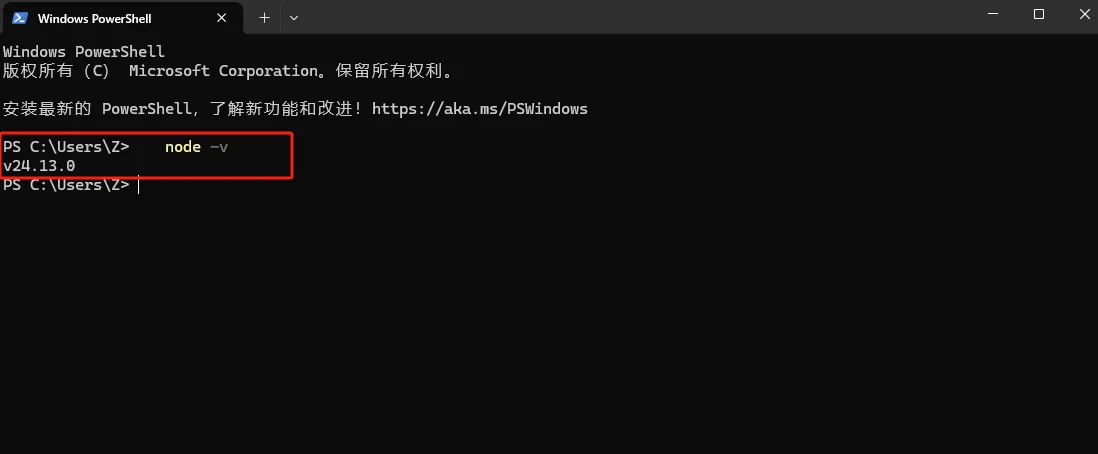 • 验证: 重新打开 PowerShell,输入 node -v。看到显示 v22.xv24.x 才算过关。