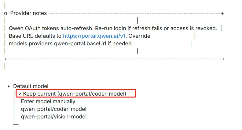 • 注意: 此时会跳出网页让你授权,登录或者注册Qwen的账号既可。这步是为了先让机器人有个“临时大脑”跑起来。 选择OpenAI Chat,拿到Key之后输入到界面中给Clawdbot。 选择这个直接按回车即可。