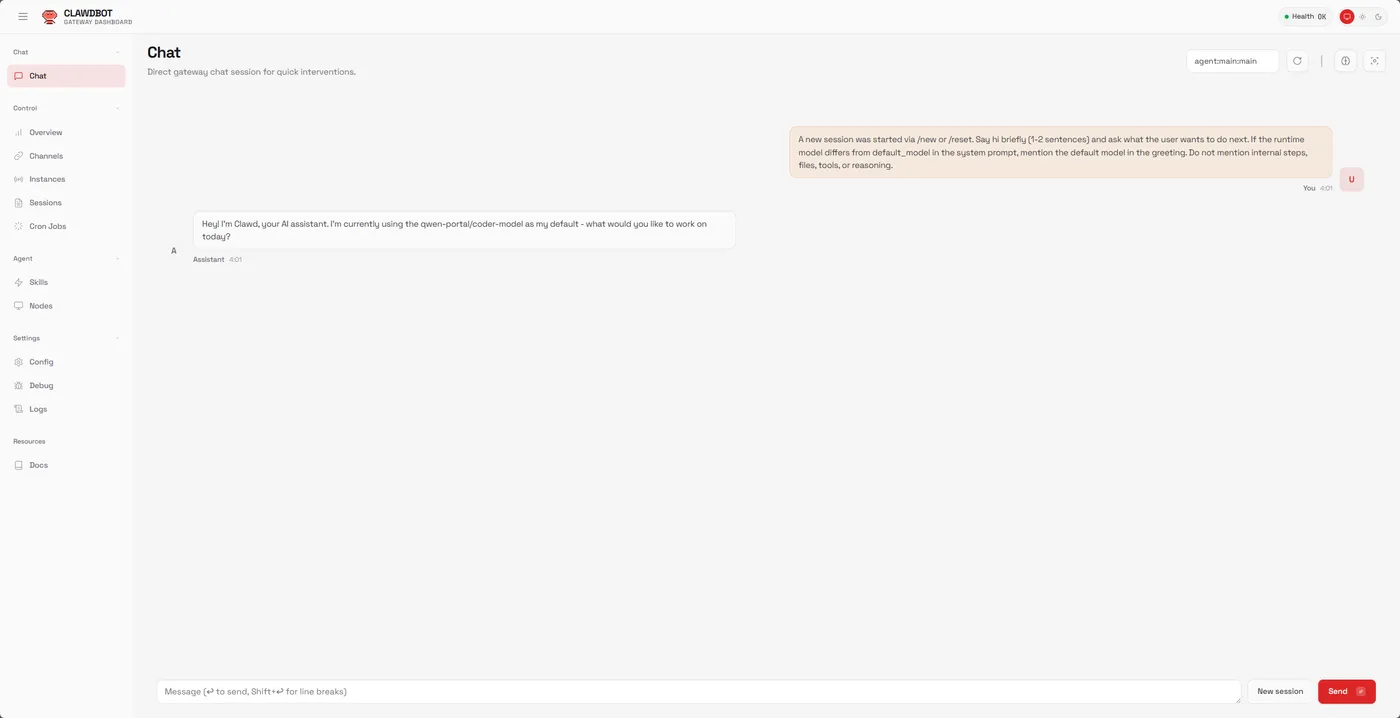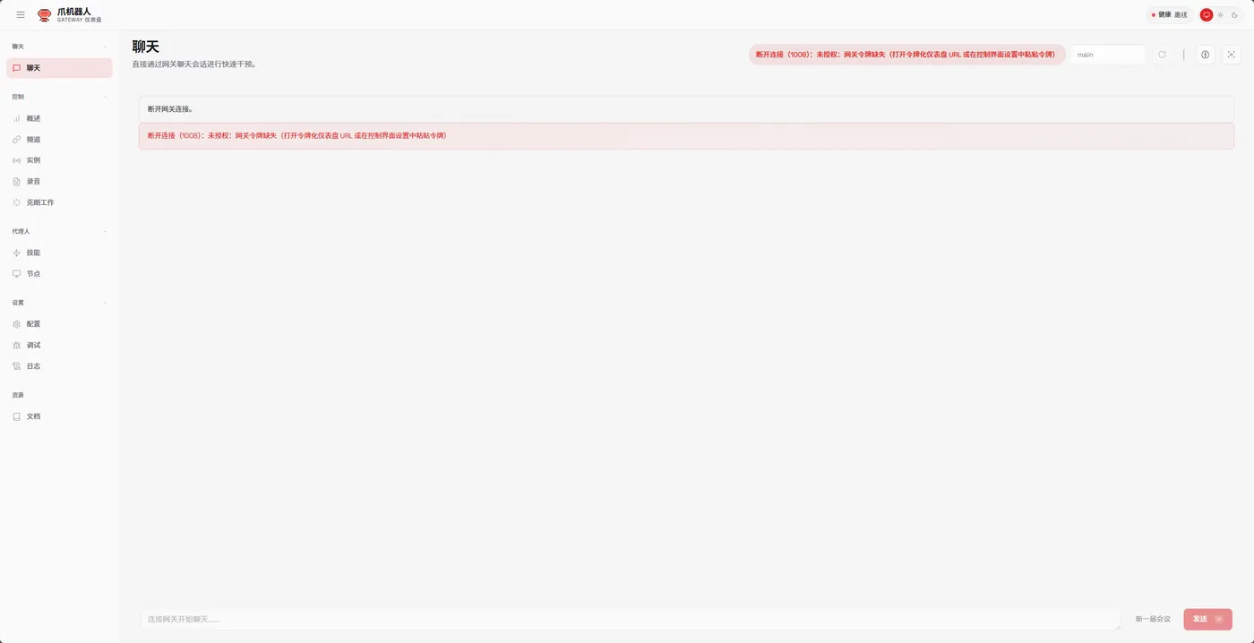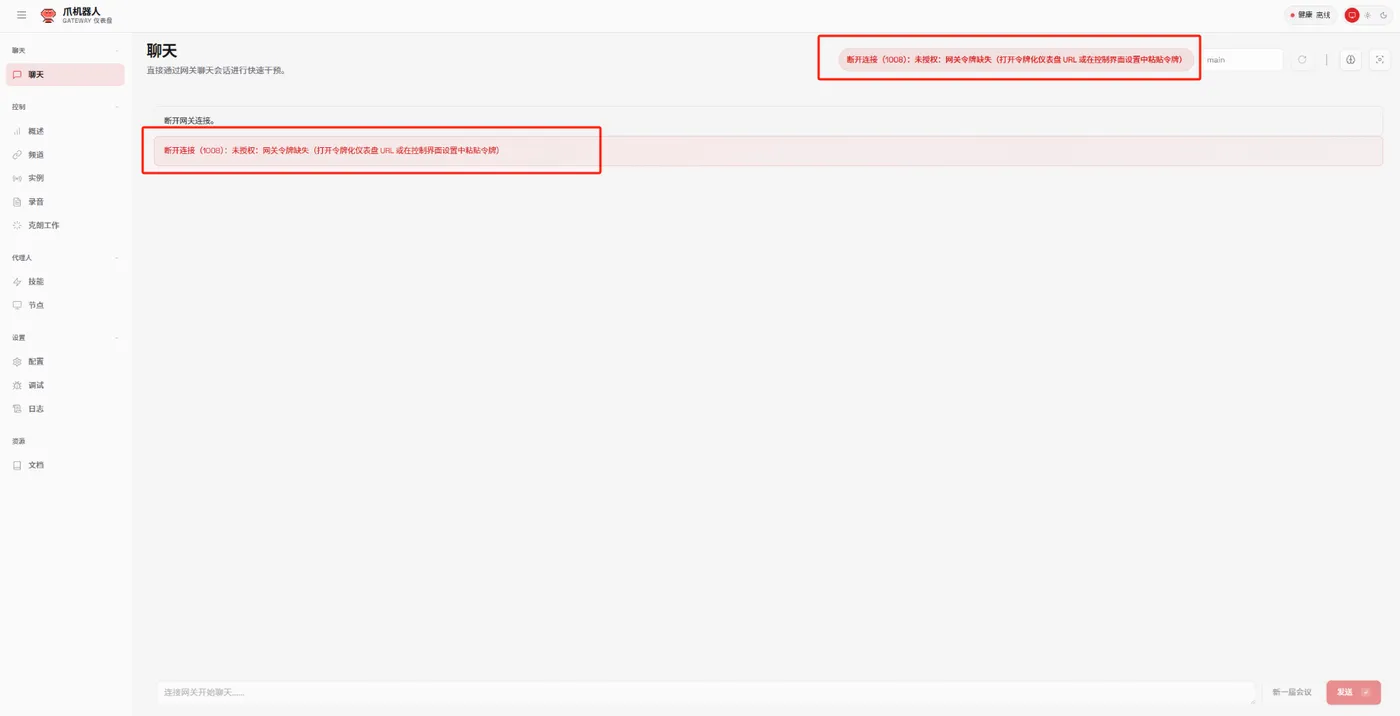 4. 回到浏览器,点击右上角红色状态,把 Token 贴进去。一旦变绿,恭喜你,你的助理正式上线了!