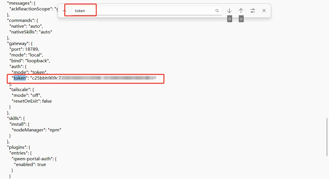 3. 找到 "token": "xxxxxxx" 这一行,复制那串长代码。