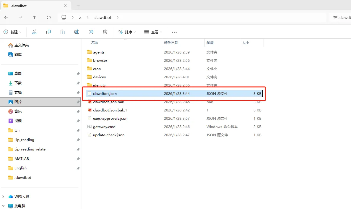 1. 打开文件夹 C:\Users\你的用户名\.clawdbot