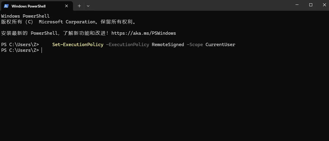 • 操作: 以管理员身份运行 PowerShell,执行: powershell Set-ExecutionPolicy -ExecutionPolicy RemoteSigned -Scope CurrentUser