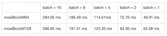 通过这个动态调优策略,我们提升了MoE层的计算性能,在端到端上获得了可观的延迟收益。从以下实验结果可以看出,该优化在小批次下性能提升更明显,这也符合我们的预期:批次越小,Token分配越容易出现稀疏现象,动态调优优势也更明显。