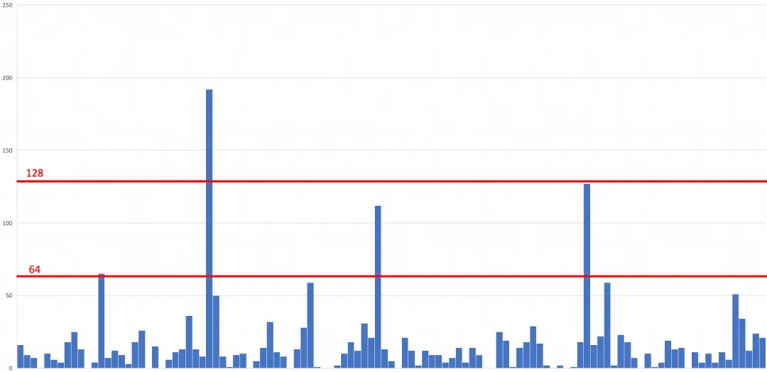 可以看出,绝大多数专家分配到的Token数量都小于64,只有极个别专家的Token数超过128。这种稀疏的负载和底层执行机制产生了冲突,因为我们采用的MoE后端是DeepGemm,其默认的计算粒度blockM是128。实际计算时,为了充分利用Tensor Core进行高效的矩阵运算,DeepGemm会将每一个专家分配的Token数padding到128的整数倍。这种方式在当前场景引入了大量的无效计算,造成了算力浪费。