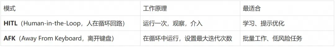 - 需要明确的完成条件(如输出特定关键字、测试通过等)和合理的最大迭代次数作为安全控制。
