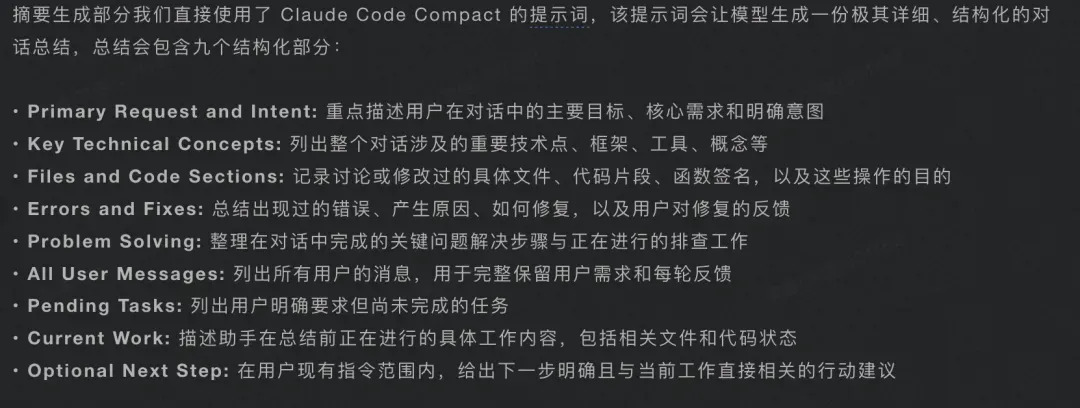 因为上下文压缩实际上是有损的,一旦触发压缩,Agent 就似乎忘记了之前的任务,所以 CC 在压缩的时候非常的谨慎: