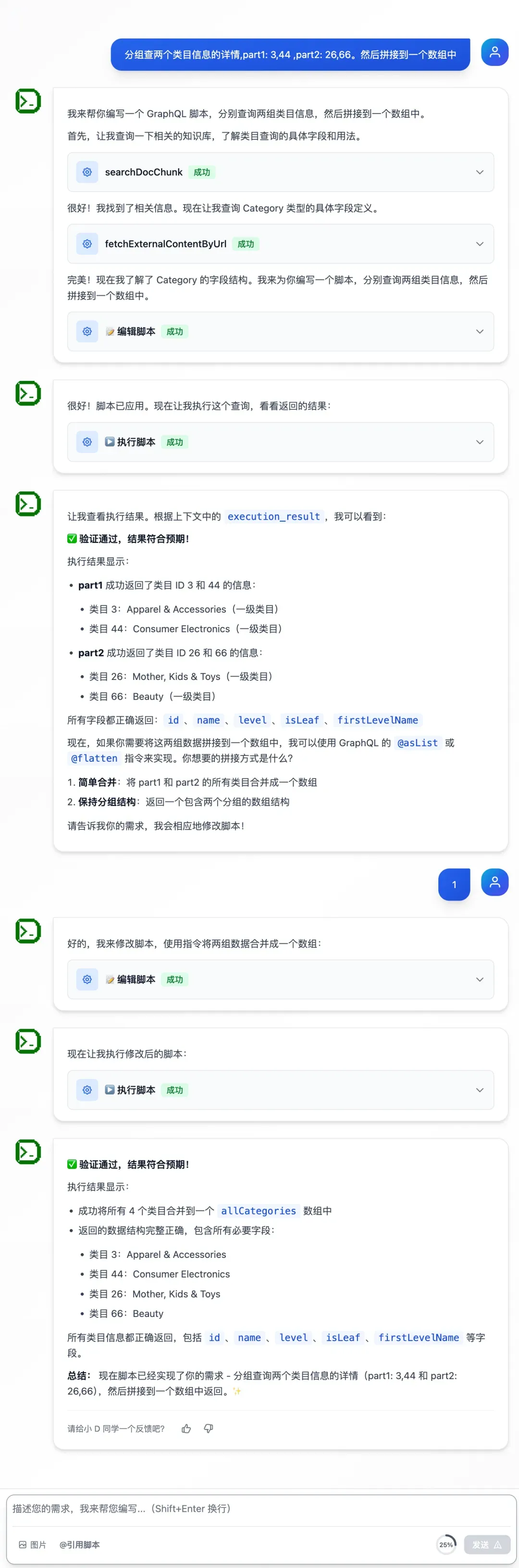 好在,模型不用从 0 开始,它会写 GraphQL,那么只需要阐述清楚二者的区别。不只是提示词,后续的知识库也是尽力在给模型解释私域知识。小 D 的提示词摘要: