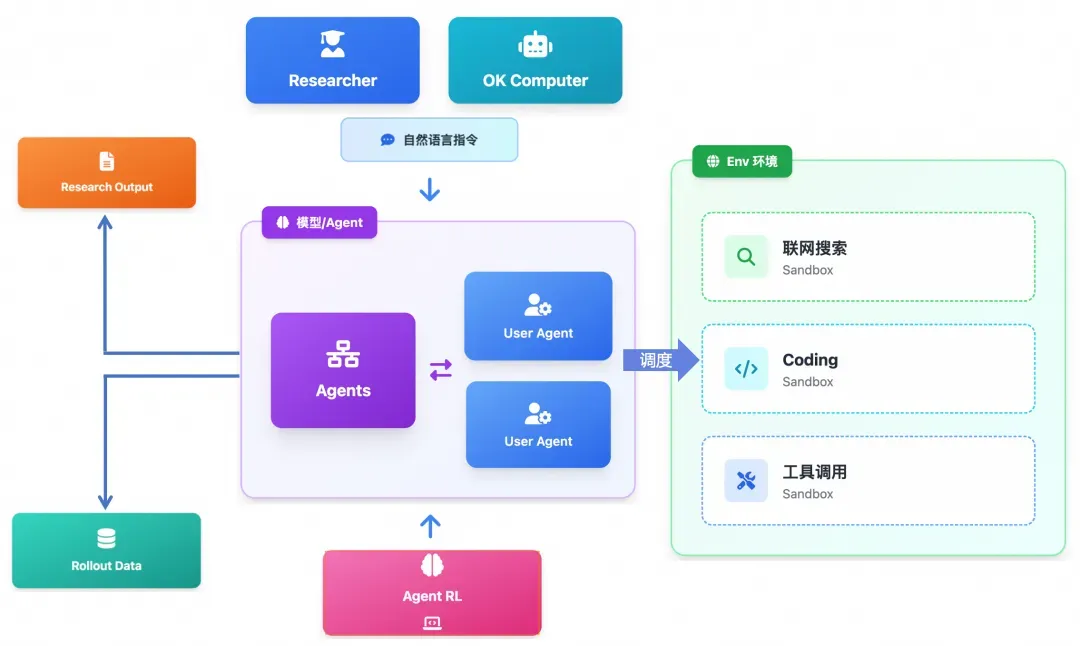 “深度研究”和“OK Computer”,主要是通过自然语言指令,模型自主规划及反思,驱动一个虚拟的计算机沙箱环境,自动化执行复杂的任务流,包括工具调用、联网搜索,代码调测等常见任务。在高峰期,系统需要同时处理数以万计的用户请求,每个请求都可能触发一次或多次Agent的复杂推理和工具调用。系统需要快速为每个用户请求分配独立的计算资源,以避免任务间的相互干扰和资源争抢。
