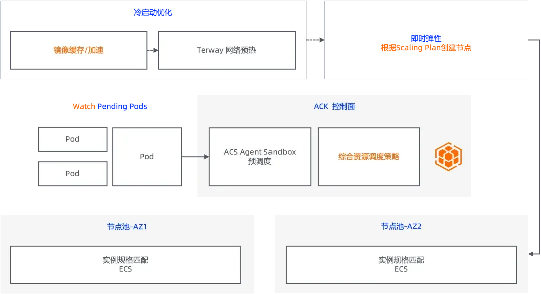 图|ACK的节点池即时弹性能力/ACS Agent Sandbox协同调度