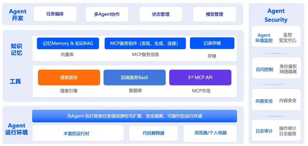 - 完善的Agent开发平台和安全监控服务,可以为Agent产品的顺利上线提供重要保障。