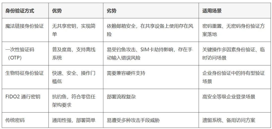 魔法链接与其他身份验证方式的对比