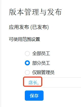 2.在「可使用范围设置」中选择「部分员工」;
