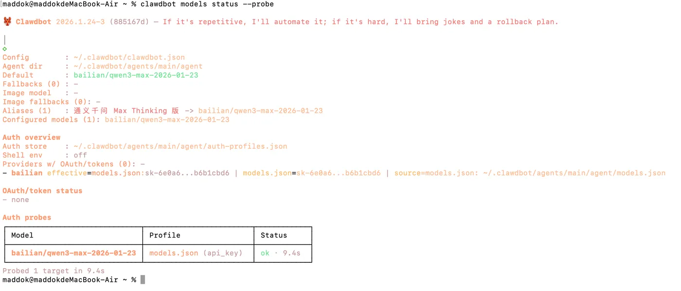 clawdbot models status --probe