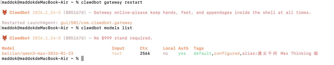 你还可以通过以下指令看刚刚设置的模型是否被 Clawdbot 识别: