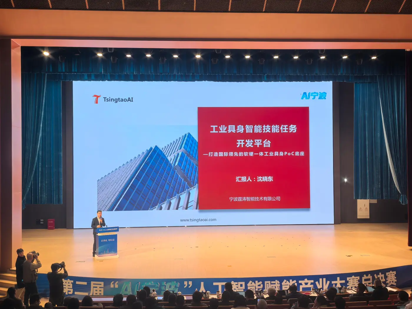 1月27日宁波浙江大学软件学院启真大讲堂,第二届“AI宁波”人工智能赋能产业大赛总决赛圆满落幕,TsingtaoAI有幸获得小组赛第一名,并代表宁波高新区参加冠军赛,凭借“工业具身智能技能任务开发平台”项目在冠军赛中斩获总决赛二等奖。
