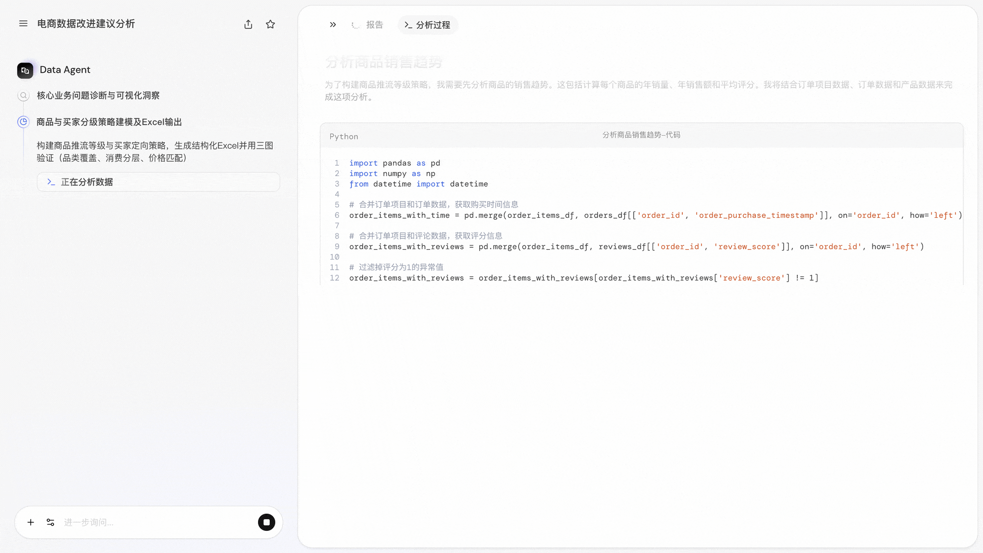 用户不仅能看到结论,也能理解“这个结论是如何得出的”,整个分析过程清晰可见、可控且可信,关键步骤可回溯,确保结果既可靠又透明。